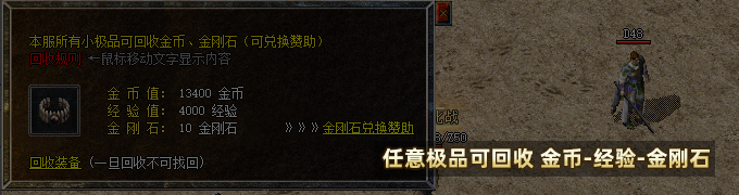 ★任意+1及以上极品通过NPC回收金币-经验-金刚石